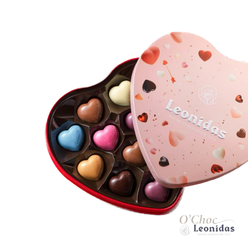 Verwen je gliefde met deze geschenkdoos gevuld met een heerlijk assortiment van Leonidas praline hartjes .